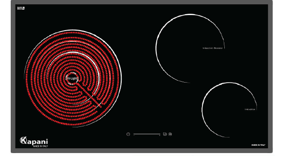 - Bếp 3: 2 vùng cảm ứng từ + 1 vùng hồng ngoại - Vùng nấu hồng ngoại: ø270/ ø210/ø140-2,7kW/1,95 kW/1,05kW - Vùng từ lớn: ø200/2,3 kW booster 3,0 kW - Vùng từ nhỏ: ø160mm/1,4kW - Kính chịu lực, chịu nhiệt EUROKEKA sản xuất tại Pháp - Mâm nhiệt, mạch điện tử EGO sản xuất tại Đức |
