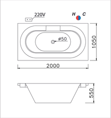 Kích thước (D x R x C): 2000 x 1050 x 550 mm