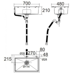 • Chậu bếp đơn đặt bàn 700mm