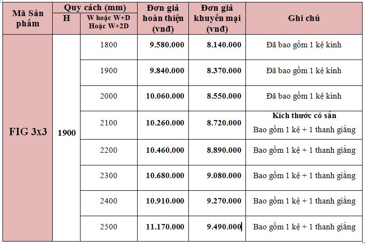 Đã bao gồm 1 kệ kính
