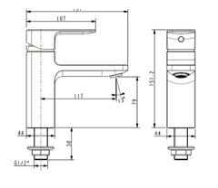 Bản vẽ kỹ thuật Vòi Lavabo American Standard WF-1306MB Nóng Lạnh Màu Đen Acacia E